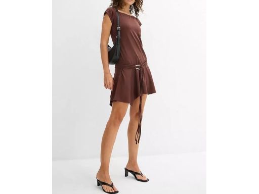 B.P.C brązowa sukienka mini asymetryczna z paskiem 44/46.