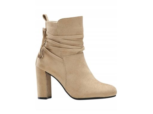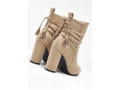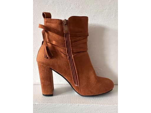 B.P.C brązowe botki na obcasie eko zamsz z paskami ^38