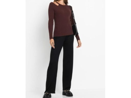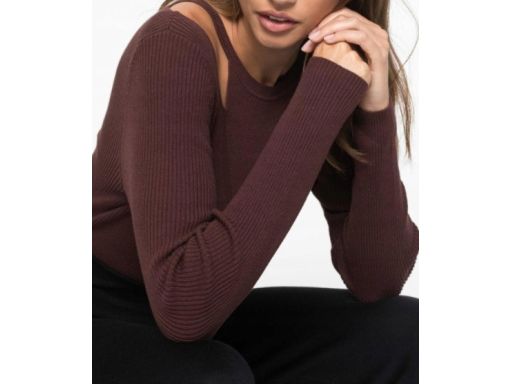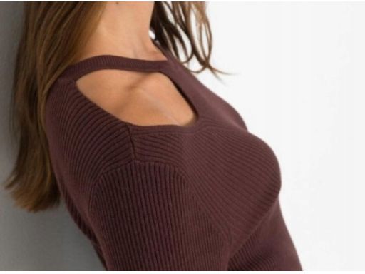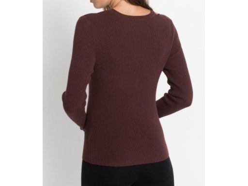 B.P.C brązowy sweterek damski z wycięciem na ramieniu ^48/50