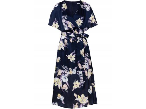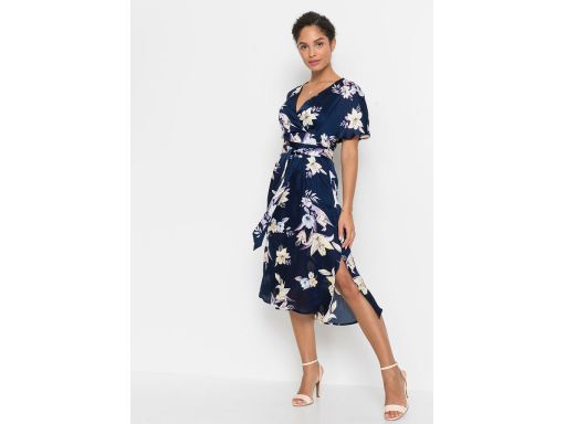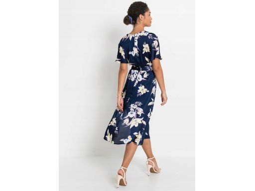 B.P.C ciemnogranatowa w kwiaty sukienka midi r.38