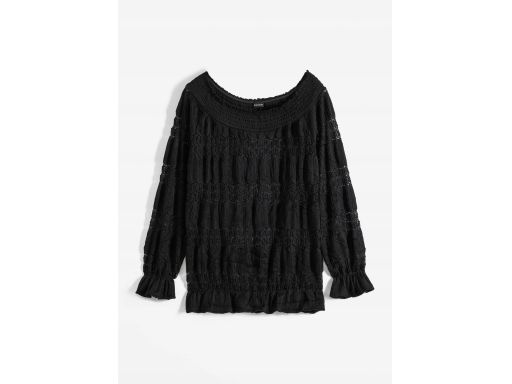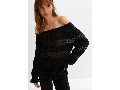 B.P.C czarna bluzka carmen z koronką ażurowa 40/42.