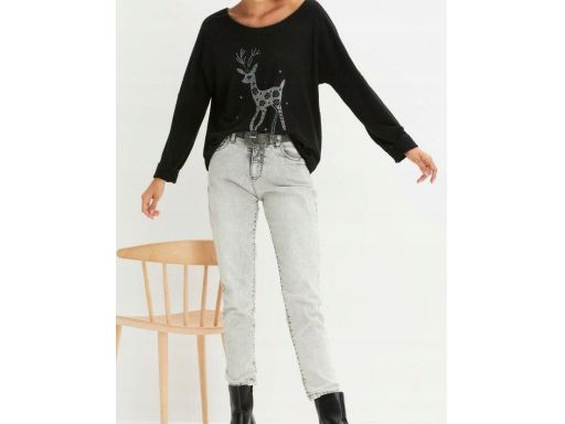 B.P.C czarna bluzka dzianinowa ze srebrnym wzorem świątecznym ^36/38
