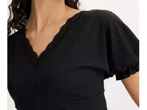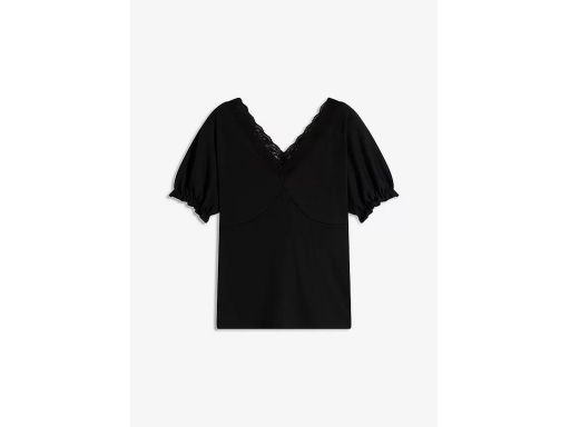 B.P.C czarna bluzka t-shirt prążkowana z koronką 44/46.