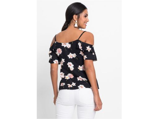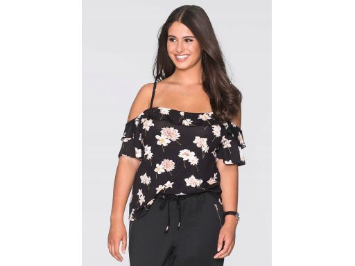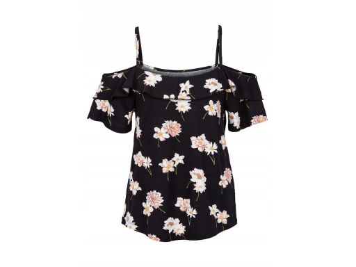 B.P.C czarna bluzka w kwiaty odkryte ramiona ^40/42