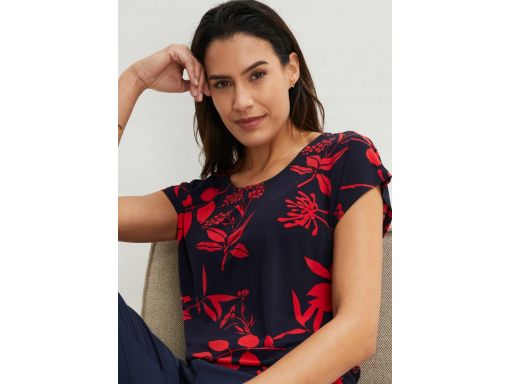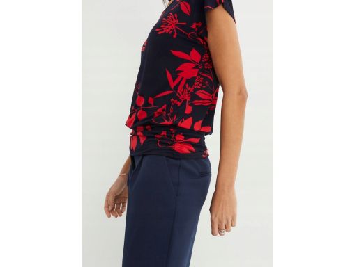 B.P.C czarna bluzka z czerwonym nadrukiem kwiatowym ^40/42