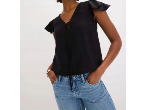 B.P.C czarna bluzka z falbankowymi rękawami 36.