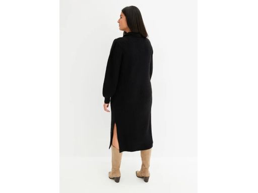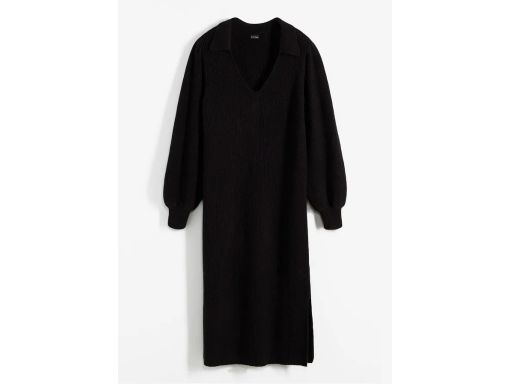 B.P.C czarna dzianinowa sukienka midi w serek z kołnierzykiem 36/38.