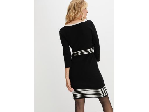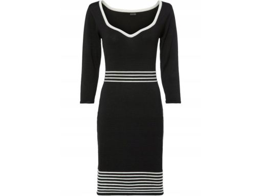 B.P.C czarna dzianinowa sukienka z białymi paskami 36/38.