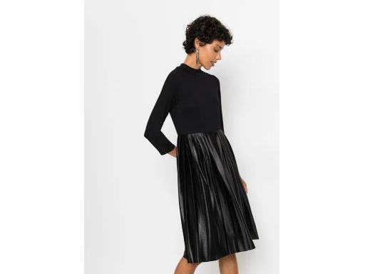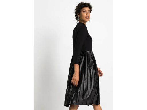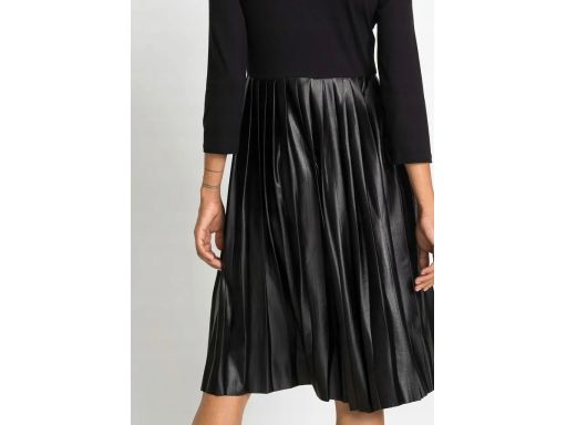 - Efekt 2w1 -czarnej bluzki i plisowanej spódnicy z materiału imitującego eko skórę