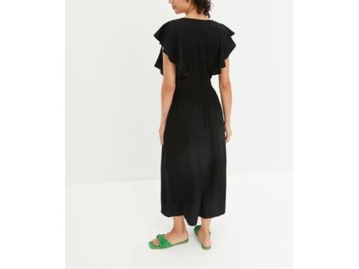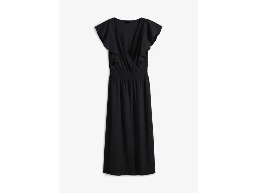 B.P.C Czarna sukienka krepowana midi z falbaną r.48/50