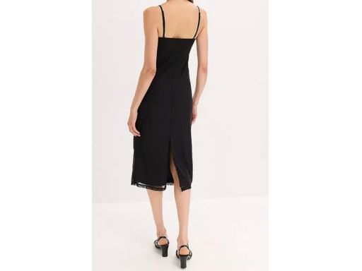 B.P.C czarna sukienka midi ołówkowa z siateczki na ramiączka 40/42.