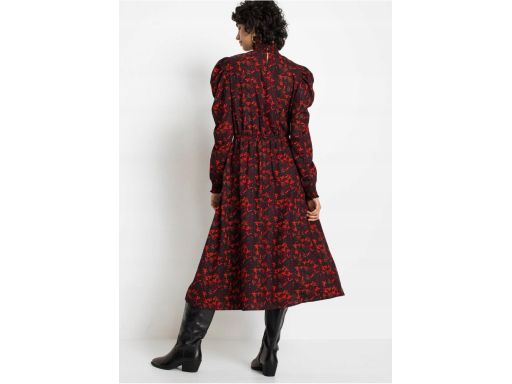 B.P.C czarna sukienka midi z pomarańczowym wzorem ^50