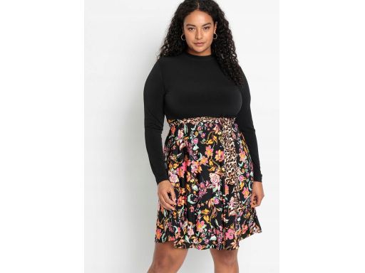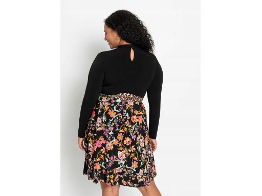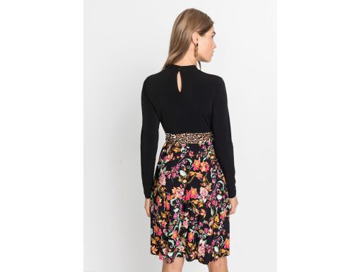 - dół czarny z nadrukiem w wielokolorowe kwiaty