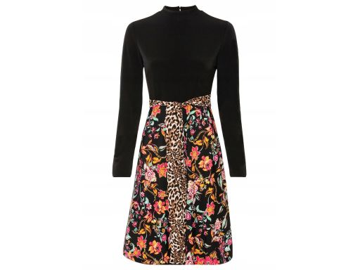 B.P.C Czarna sukienka w kolorowe kwiaty ^36/38