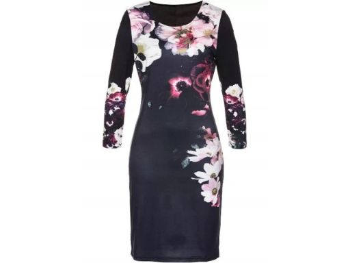 B.P.C czarna sukienka w kwiaty 40/42.