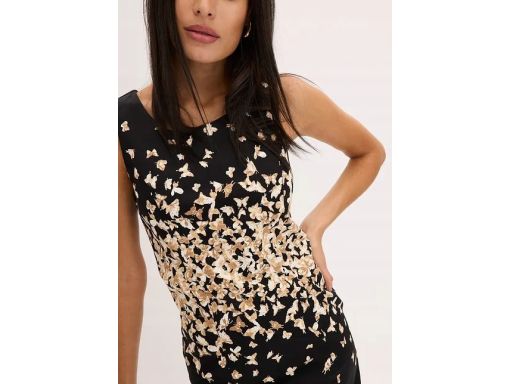 - czarna w beżowo-śmietanowe motyle