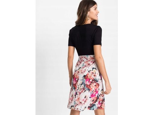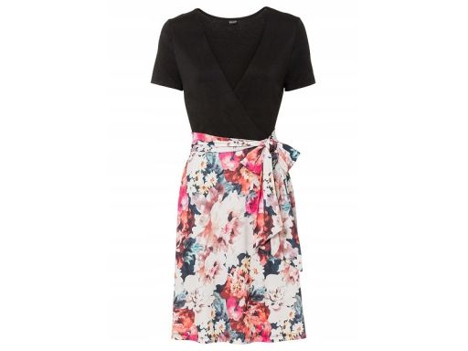 B.P.C czarna sukienka z częścią spódnicową w kwiaty 36/38.