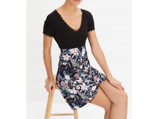 B.P.C czarna sukienka z częścią spódnicową w kwiaty ^40/42