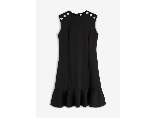 B.P.C czarna sukienka z falbanką i dekoracyjnymi guzikami ^40/42