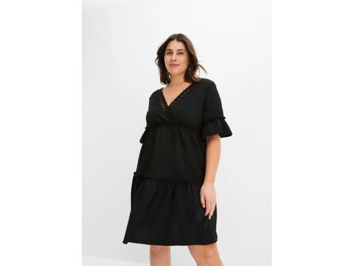 B.P.C czarna sukienka z krepy z falbanami r.40/42