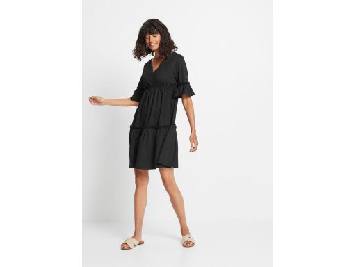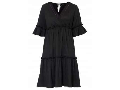B.P.C czarna sukienka z krepy z falbanami r.40/42