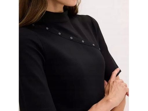 - dekolt z małą stójką