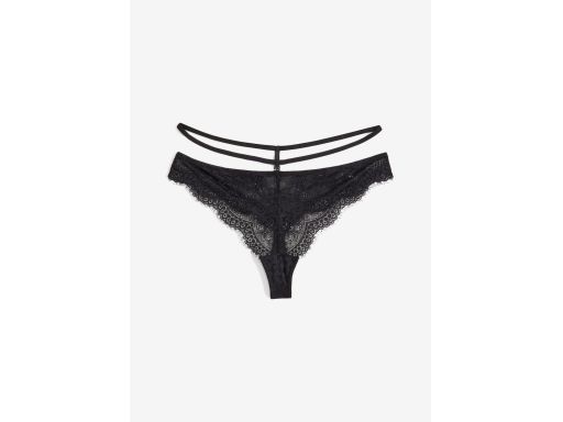 B.P.C czarne stringi koronkowe z ozdobnymi paskami ^48/50