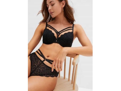 B.P.C czarne stringi koronkowe z ozdobnymi paskami r.40/42