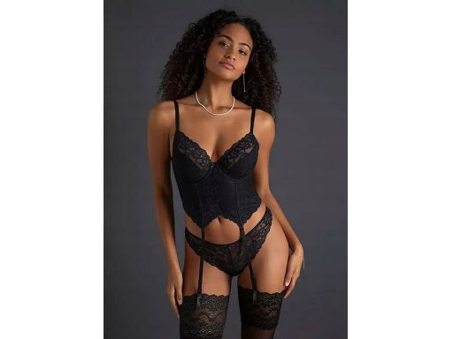 B.P.C czarny gorset usztywniany z odpinanymi paskami do pończoch 100E.