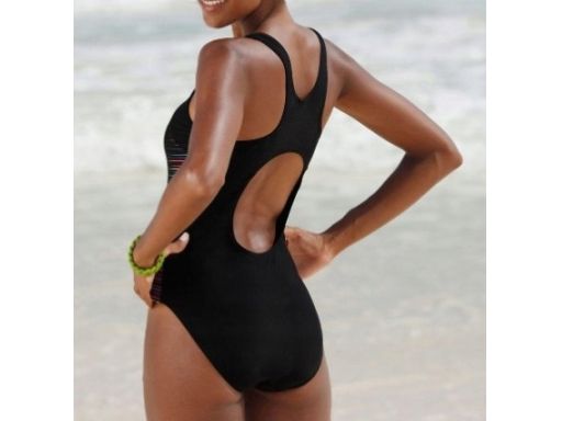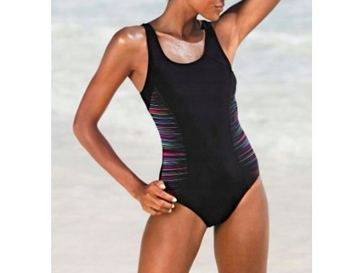 B.P.C czarny kostium kąpielowy z kolorowymi paseczkami sportowy r.46