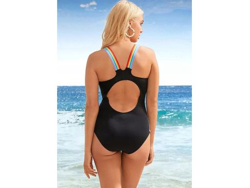 B.P.C czarny kostium kąpielowy z tęczowymi paskami sportowy 36.