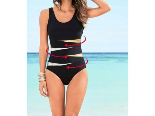 B.P.C czarny kostium kąpielowy ze wstawkami srebrno-złotymi r.38