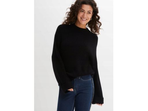 B.P.C czarny sweter damski wywinięte rękawy r.44/46