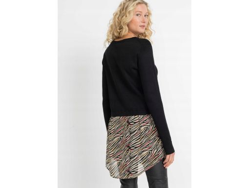 B.P.C czarny sweter z koszulową wstawką szyfonową ^40/42