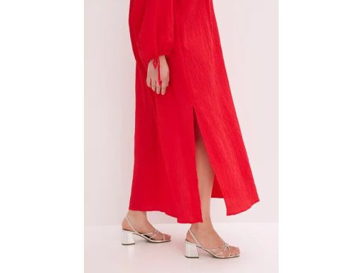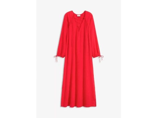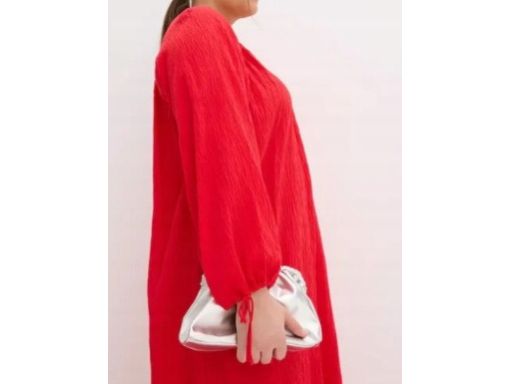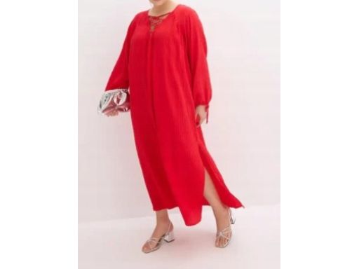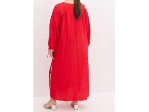 B.P.C czerwona długa sukienka kaftanowa kreszowana ^42