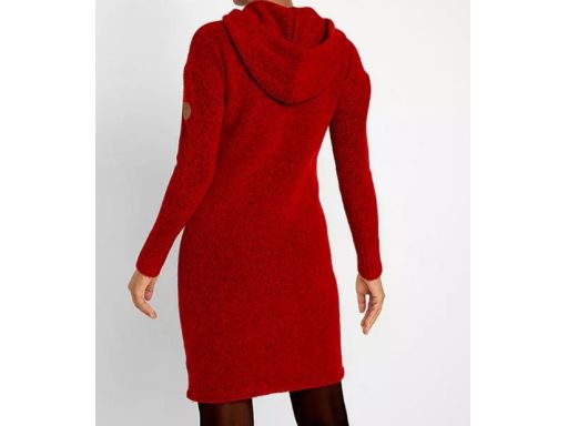 B.P.Cczerwona dzianinowa sukienka z kapturem r.48/50