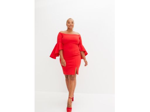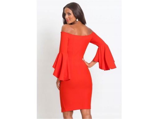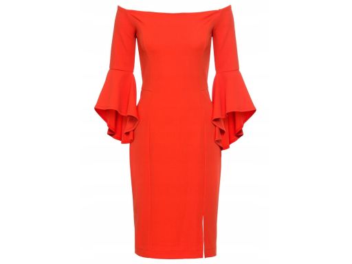 B.P.C czerwona sukienka carmen ołówkowa 36/38.