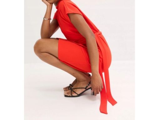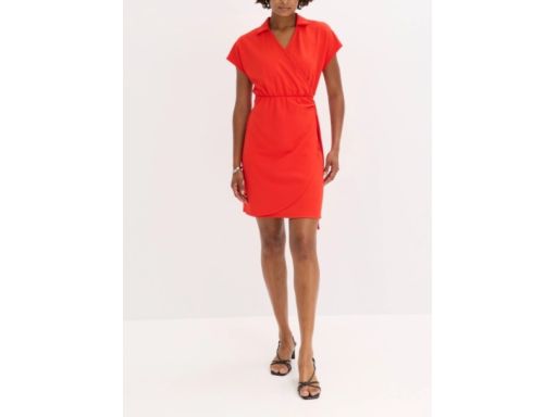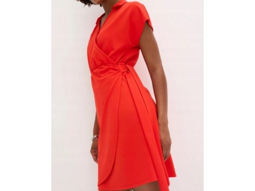 B.P.C czerwona sukienka efektem założenia kopertowego 48/50.