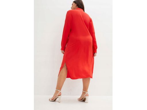 B.P.C czerwona sukienka koszulowa midi z przewiązaniem r.42