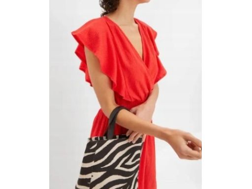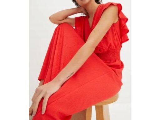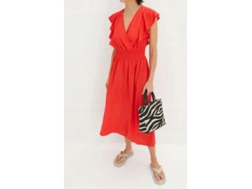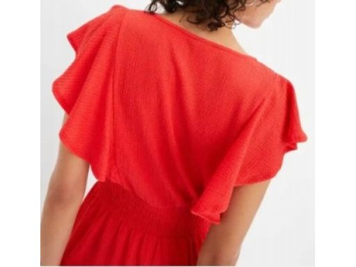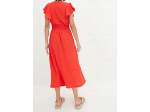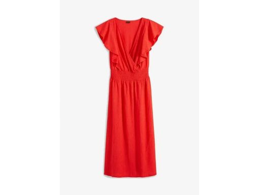 B.P.C czerwona sukienka krepowana z falbanką r.48/50
