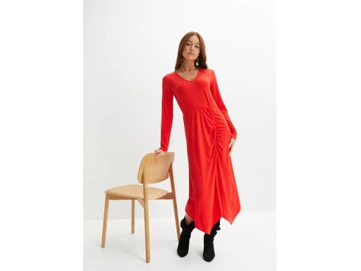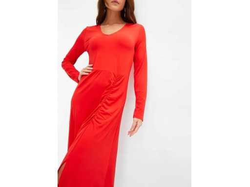 B.P.C czerwona sukienka midi z marszczeniem 36/38.