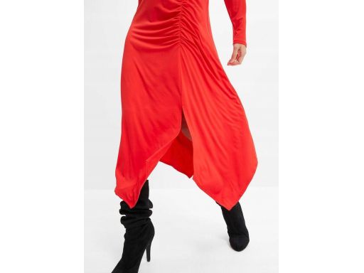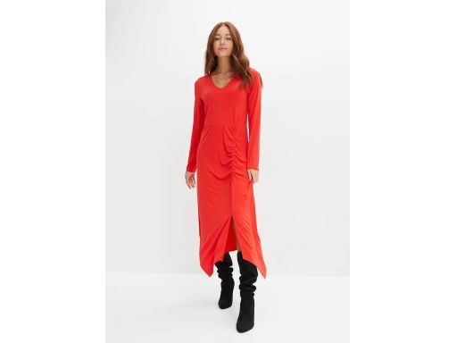 B.P.C czerwona sukienka midi z marszczeniem 36/38.