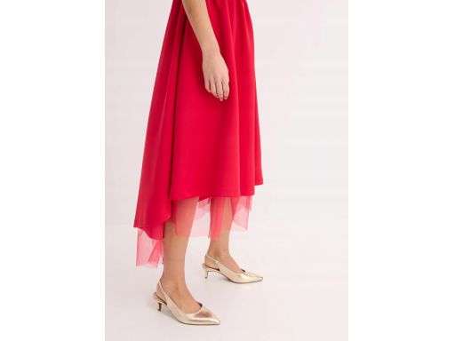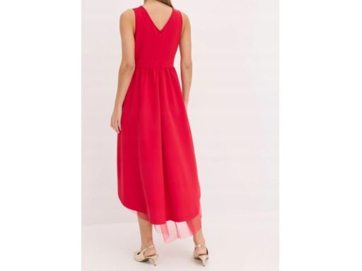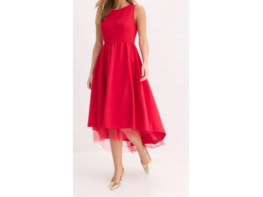 B.P.C czerwona sukienka wieczorowa z tiulem i dłuższym tyłem ^36/38