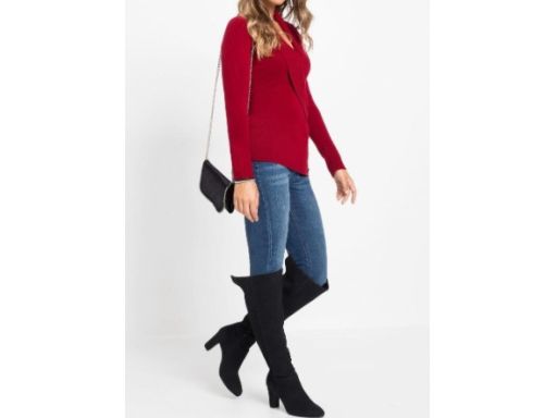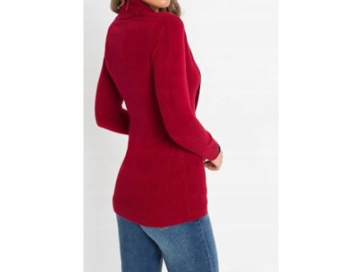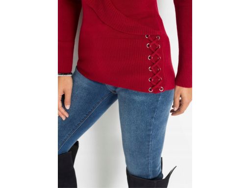 B.P.C czerwony sweterek z falbanką i sznurowaniem r.40/42