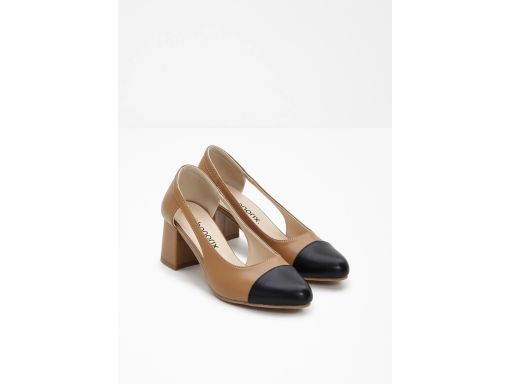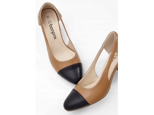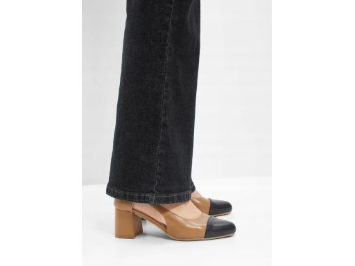 B.P.C czółenka na klocku beżowo-czarne z wycięciem r.38
