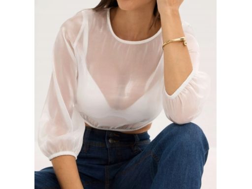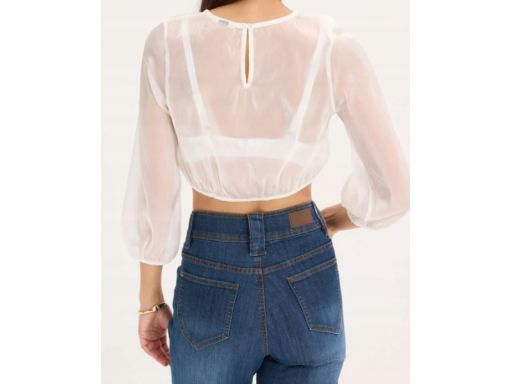 B.P.C damska bluzka krótka prześwitująca z połyskiem biała 48.