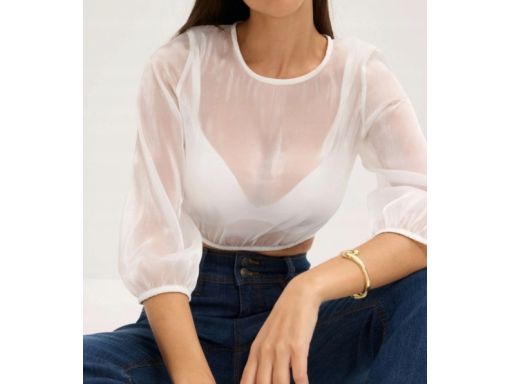 B.P.C damska bluzka krótka w stylu ludowym prześwitujaca biała r.40