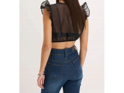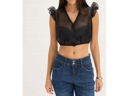 B.P.C damska bluzka krótka w stylu ludowym prześwitująca czarna 44.