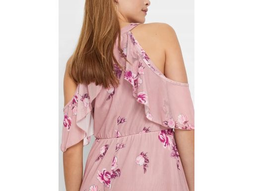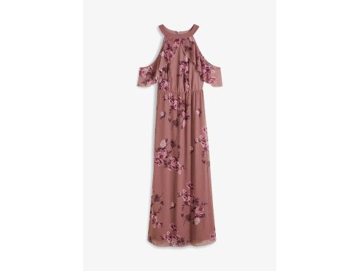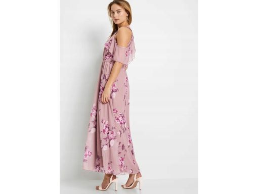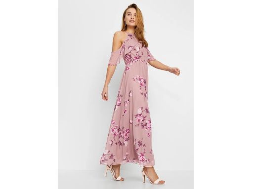 B.P.C długa maxi sukienka siateczkowa róż w kwiaty odkryte ramiona ^40