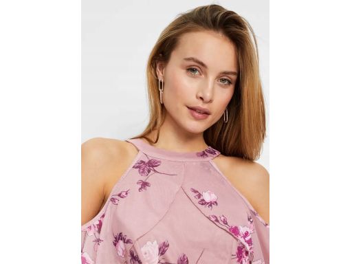 B.P.C długa maxi sukienka siateczkowa róż w kwiaty odkryte ramiona ^40/42